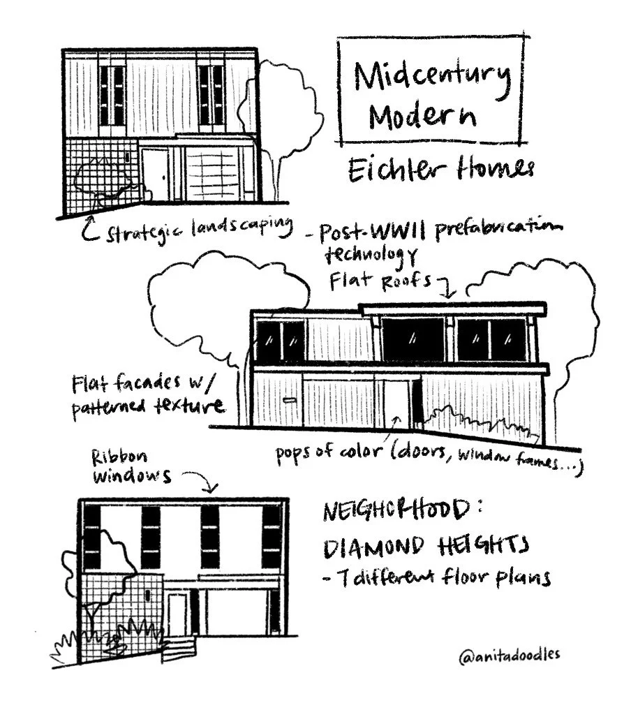Tucked away in the hills of Diamond Heights lies an architect’s oasis — streets lined with homes design by Joseph Eichler.