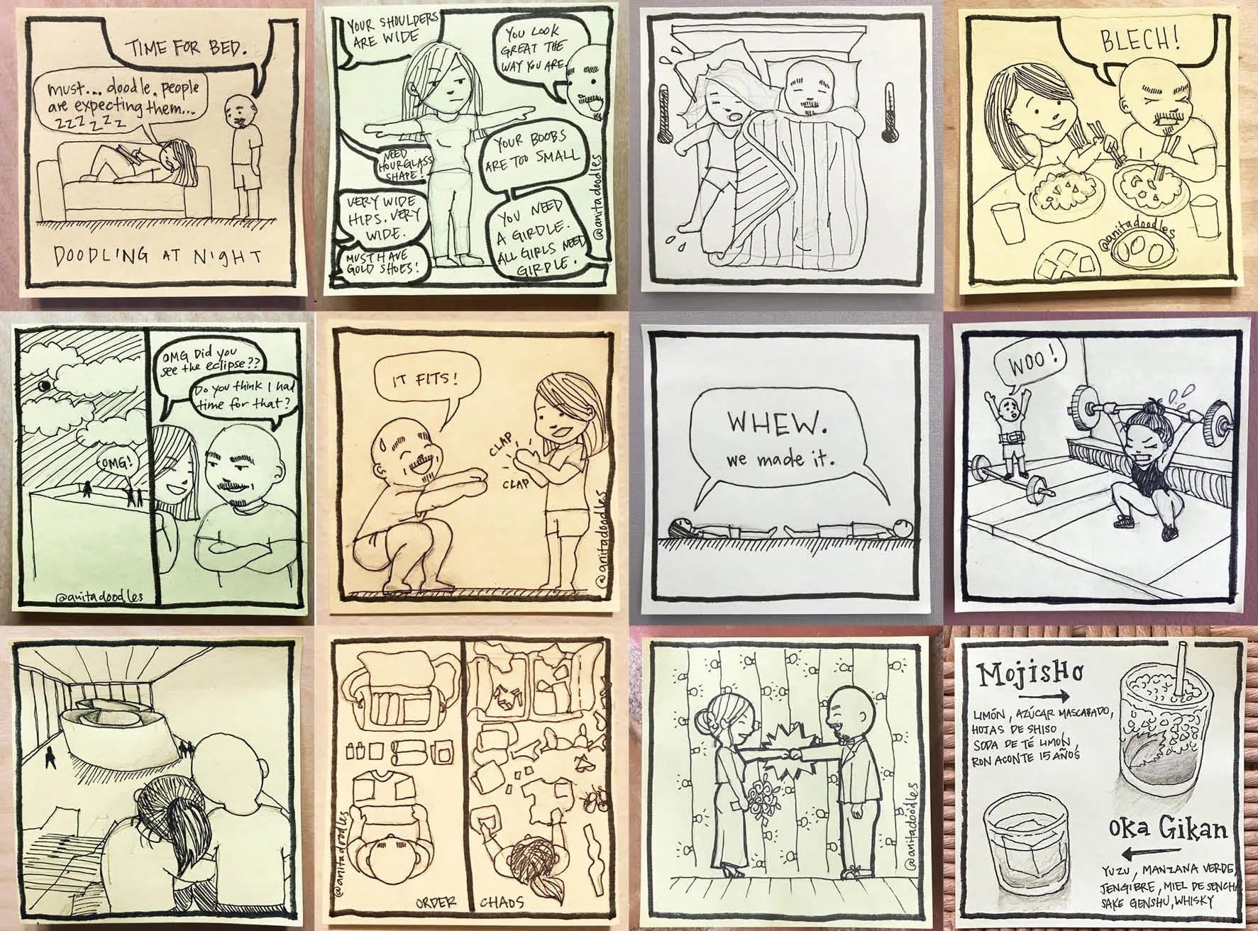 These post-it notes started when I had idle time at the office, and became a little project for me leading up to my wedding in 2017. I am never good at consistent drawing, so I challenged myself to drawing one post-it note illustration every day for the month of July 2017. I had a lofty goal of making a bunch of them and creating a book for Steve as a wedding gift... but well... that never happened! But, what happened was I realized so many people were entertained by this. Maybe one day i will make a book!